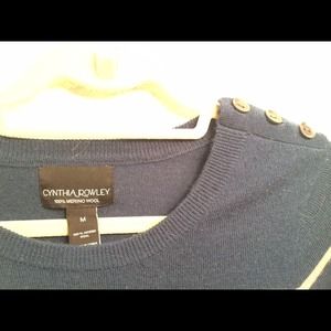 Comfort and class! This striped Cynthia Rowley dress is 100% wool with adorable one shoulder button details! Size, M. It's perfect for Fall with a great pair of riding boots or beige booties! Not that fitted, worn 2 times. TO BUY FOR THE 50% OFF COMMENT BELOW WITH "50TODAY"! I'll adjust the price & let you know, then you can buy!!