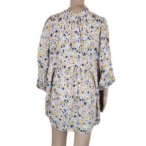 Cynthia Rowley Yellow Blue Floral Peasant Pleated Blouse