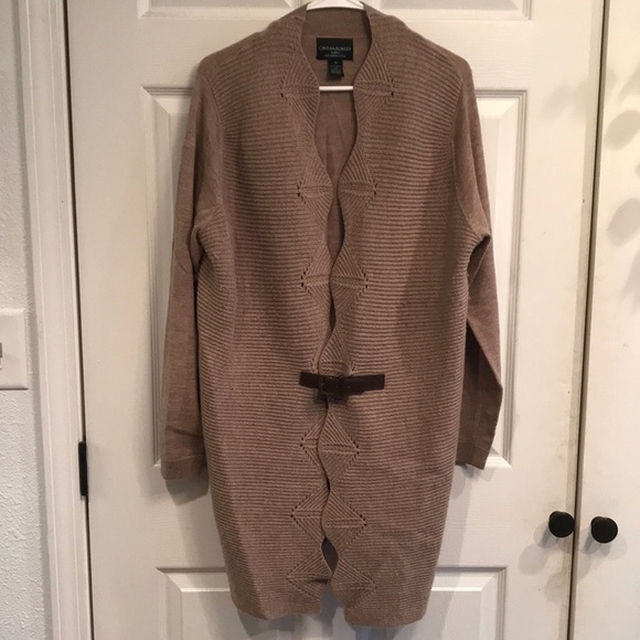 Cynthia Rowley brand size 1X sweater jacket with buckle closure in front. 100% merino wool. Excellent condition. Excellent quality.