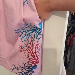 Gorgeous NWT pink Cynthia Rowley dress with POCKETS! Neat pattern, one strap, bubbles in the thigh area. Tragically, I gained too much weight to zip it up before ever wearing :(