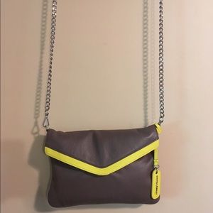 Cynthia Rowley envelope bag brown and neon yellow w removable chain strap w leather shoulder protector Large enough to handle all your necessities in perfect condition Leather cleaned and conditioned yesterday