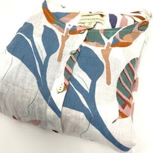 Cynthia Rowley floral convertible sleeve linen tunic top tropical button Size 1X
