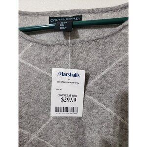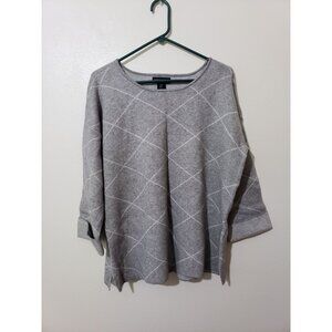 Cynthia Rowley gray boat neck long sleeve diamond print sweater, pullover size L