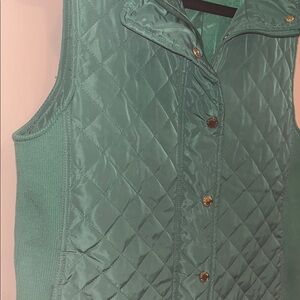 Stylish green quilted vest with button closure. Perfect for layering. From a smoke and pet free home. Freshly washed and air dried.