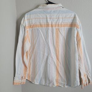 Cynthia Rowley large button front women orange polo linen hi-low pocket linen