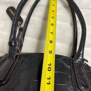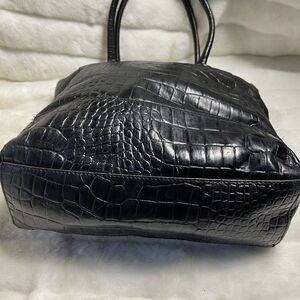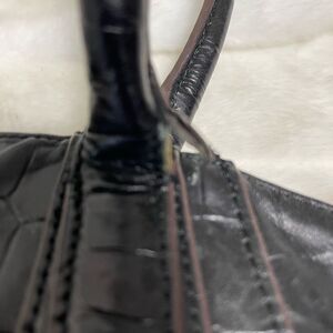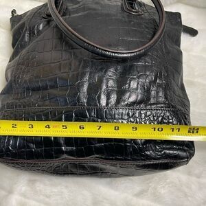 Cynthia Rowley leather black croc prints large satchel top zipper the inside lining has a side zipper two side pockets pre owned in good used condition the lining has an ink stain and signs of wear on the handle straps.see all pictures any questions please message.F1