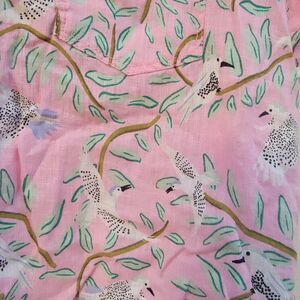 Cynthia Rowley linen bird print button Up top Wmns Sz Large Blouse Coastal Boxy