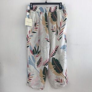 Cynthia Rowley linen machine washable Curve leaf print flat front pants 3X NWT