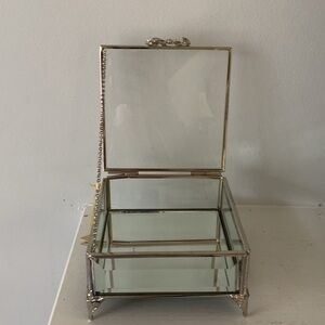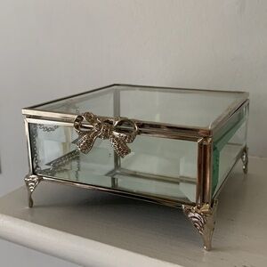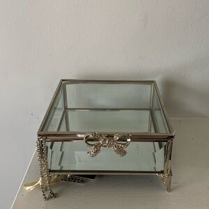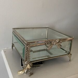 Cynthia Rowley mirrored jewelry box bow NWT vanity home decor chrome silver