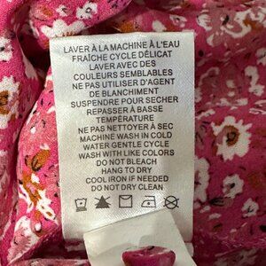 This Cynthia Rowley size 1X top in pink ditsy floral print features flutter cap sleeves. A quintessential piece for a feminine closet, made from comfortable polyester. It has been steamed or laundered and comes from a smoke free home.