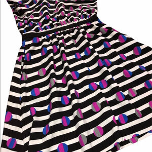 Cynthia Rowley size 2 black Fun striped & circles party dress