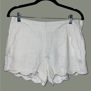 Cynthia Rowley size 8 white linen blend shorts scalloped edges zips up side NWT