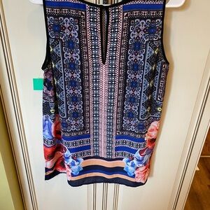 Cynthia Rowley tank top floral with geometric design size largeJunior. Split neck line.