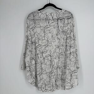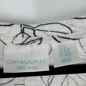 Cynthia Rowley top 3x white black leaf print linen oversized minimalist blouse