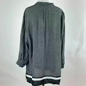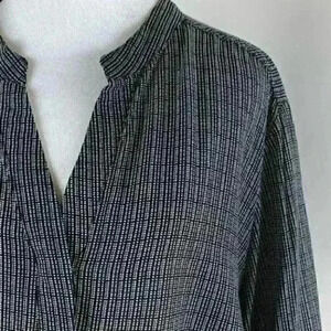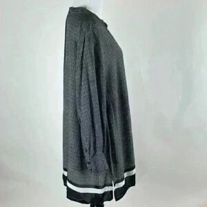 Cynthia Rowley womens top size 1X Black white striped pop over hidden button 3/4 sleeve career lightweight side slits