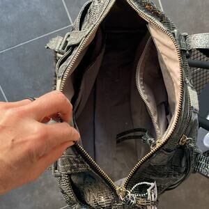 Cynthia Rowley vegan faux leather grey and black reptile snakeskin shoulder bag