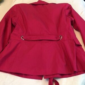 Here is a Cynthia Rowley wide Collar lightweight Jacket size Medium a drawstring waist. This jacket has shoulder pads not large 1980 ones 😊