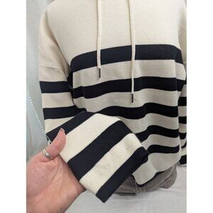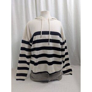 Cynthia Rowley women's XL black white stripe hooded sweater hoodie warm soft SW4