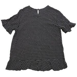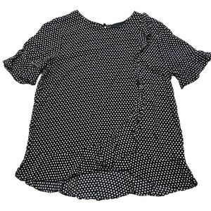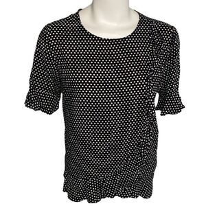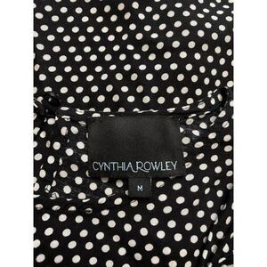 Cynthia Rowley Black White Polka Dot Ruffle Short Sleeve Rayon Top sz Medium