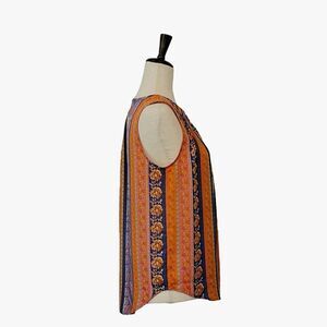Cynthia Rowley Orange Patterned Tie Pleated Sleeveless Chiffon Blouse Size S