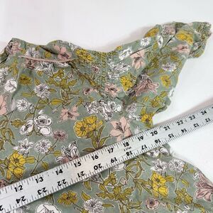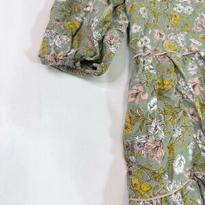 Cynthia Rowley Top Womens Large Green Tunic Floral Tiered Linen Cottagecore