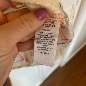 Description: collared sleeveless linen boat print dress