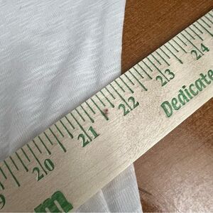 This top is in great used condition, all measurements are approximate and are located in the photos above. This top is made of a modal wool blend. This shirt is extremely stretchy and lightweight, very breathable, and has a slight ribbed texture.