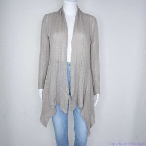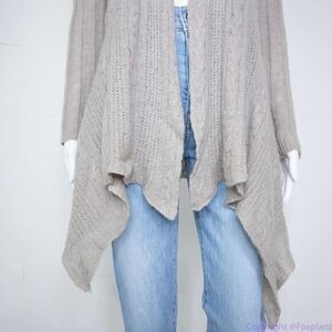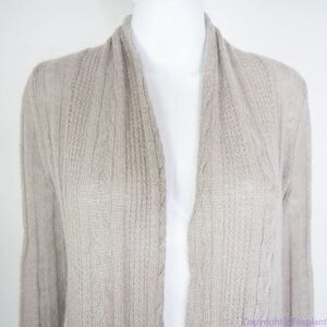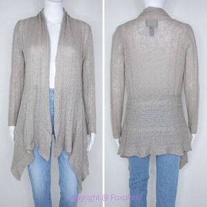 Cynthia Rowley wool blend open front shark bite hem light gray cardigan, L