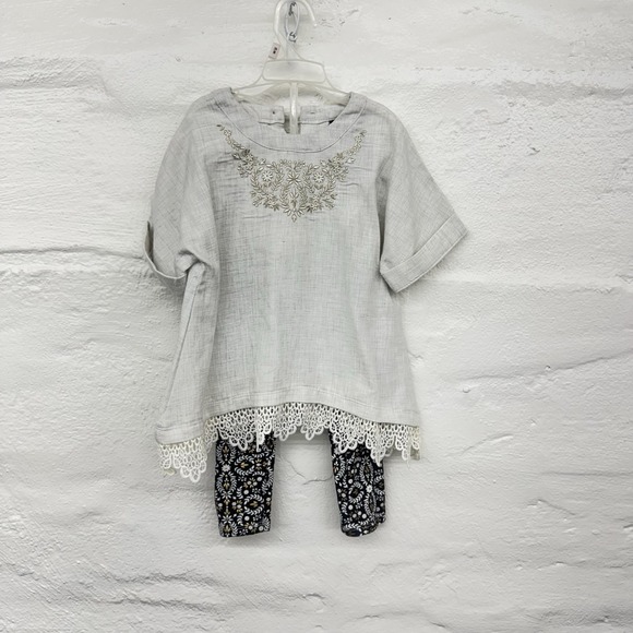 Cynthia Rowy Pant Suit Toddle 2T Dressy Leggins And Linen Look Top Embrodery