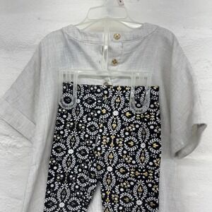 The Cynthia Rowy Pant Suit in size 2T is a stylish outfit set for girls, featuring dressy leggings with embroidered accents in beige and black colors. The set includes a linen look top amd leggings, perfect for various occasions such as activewear, parties, or casual wear. Made from 100% cotton, this outfit is ideal for the seasons of summer, fall, and spring, providing comfort and style for your little one.