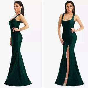 Evergreen Stretch Satin Square Neck Mermaid Dress in Size XL by Cynthia & Sahar by Dessy Collection.