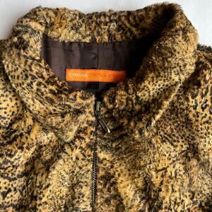 Cynthia Steffe Animal Print Lined Collared Zip Jacket Women's 12 USA