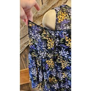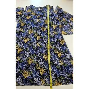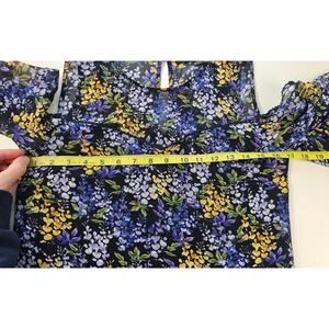Cynthia Steffe Blue Yellow Floral Cold Shoulder Bell Sleeve ruffle dress size 0