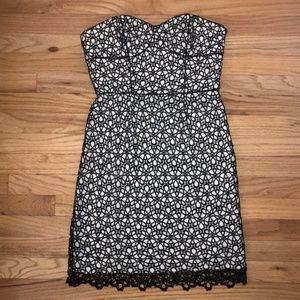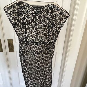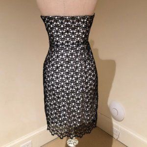 Excellent condition, worn once to black tie event. Unique and beautiful addition for your next event! Cynthia Steffe Floral Guipure Lace Strapless Cocktail Dress Black Women 2. NWOT, zipper up the side, silicone rubber strip to prevent slipping, white lining
