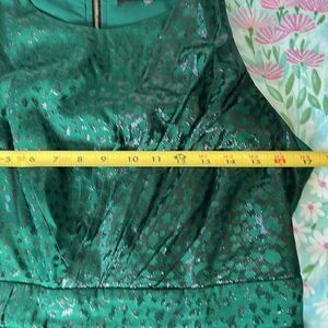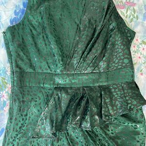 Animal print satin with exposed gold back zipper. Ruffle peplum. The photos don’t do the color justice it’s very deep and rich. Please see photos for measurements the size tag was cut out. I’m ESTIMATING A SMALL