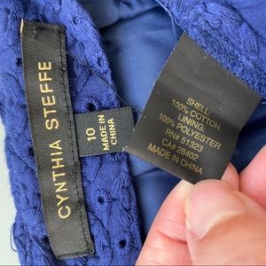 Cynthia Steffe Erica midnight navy blue a-line eyelet mini skirt. Rear zip with hook and eye clip closure. Fully lined.