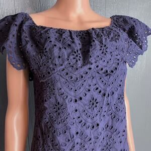 Cynthia Steffe Eyelet Off Shoulder Mini Dress 6 Coquette Fairy Peasant