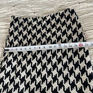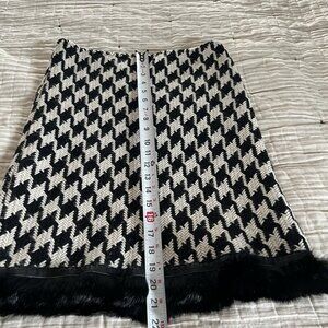 Cynthia Steffe Houndstooth Pencil Skirt Rabbit Fur Leather Hem Retro Sz 6 /8