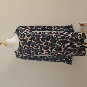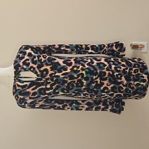 Cynthia Steffe Leopard Print Mini Dress – Bell Sleeves XS Animal Print