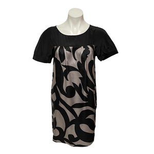 Cynthia Steffe Medium Twelfth Street Silk Black Silver Abstract Shift Dress