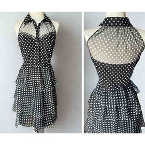 Cynthia Steffe Dress 6 or M Coquette Black White Polka Dot Mesh Ruffle Halter Fit & Flare Retro Pinup Aesthetic Cocktail 50s Inspired Dollcore