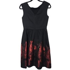 A soft allover sheen enhances the gorgeous metallic shine of lush red blooms on a striking fit-and-flare dress.