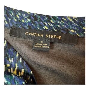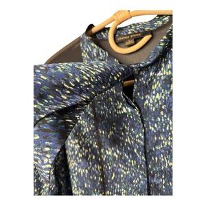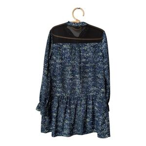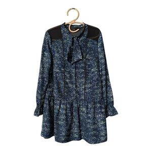 Cynthia Steffe Navy Tie Neck Babydoll Long Sleeve Patterned Mini Dress Size 6