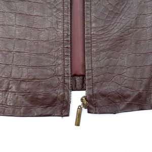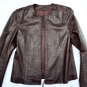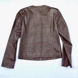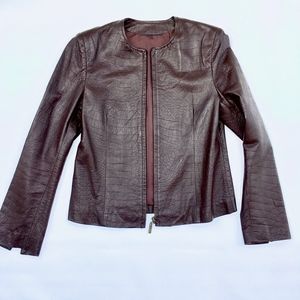 Cynthia Steffe New York Brown Leather Mock Croc Zip Front Crop Jacket Vintage