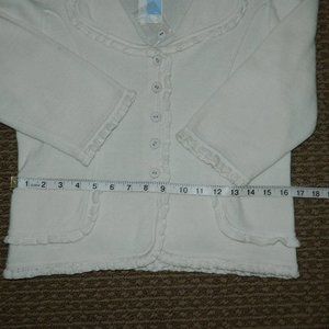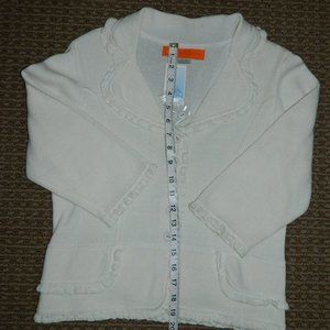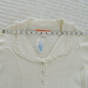 Cynthia Steffe off white cropped button down sweater jacket with 3/4 sleeves and beautiful sweater ruffle detail throughtout. New with tags, may have been miss labeled, fit good for size 10 petite Original tag retailed for $285