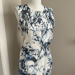 Cynthia Steffe Silk Dress Chiffon Sleeveless Pencil Side Slit Lined Blue White 8