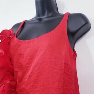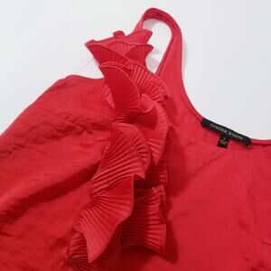 Cynthia Steffe Sateen Ruffle Scoop Neck Blouse