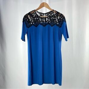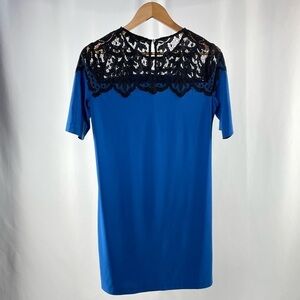 Cynthia Steffe Short Sleeve Lace Detail Shift Dress in Blue Black Size 6