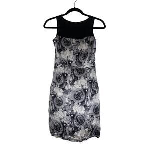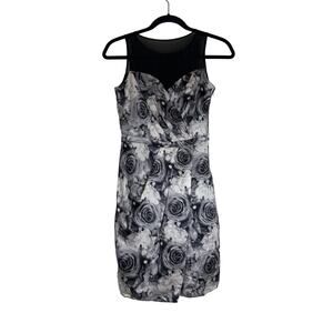 Cynthia Steffe Silk Sleeveless Dress Rose Floral Print Black White Size 0