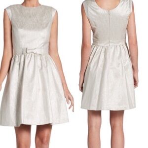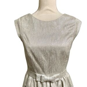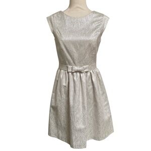 Cynthia Steffe Silver Metallic Fit & Flare Bow Cocktail Dress Size 4 NWT